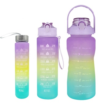 Juego de 3 uds de botella de agua de plástico para exteriores, botella deportiva motivacional con Color degradado